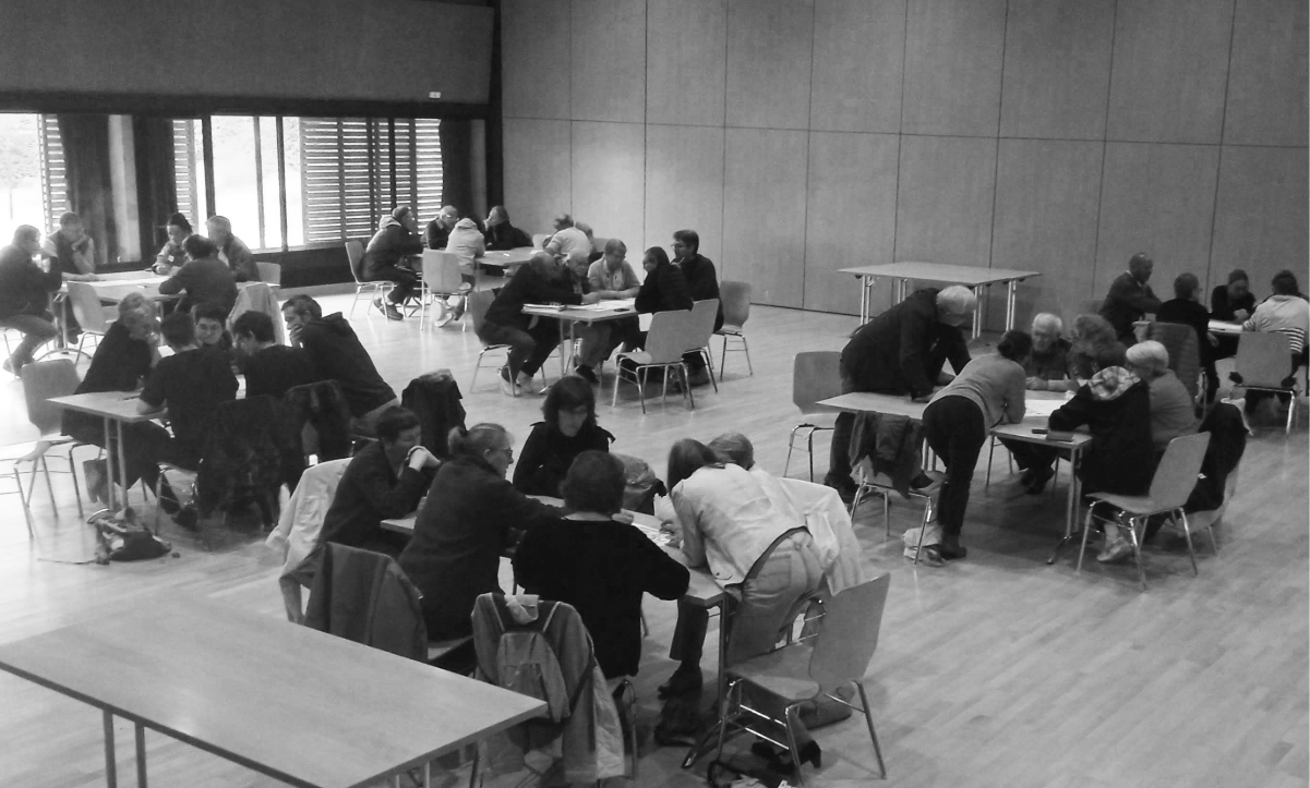 Premier temps de concertation à Gennes-Sur-Seiche (35). Les habitants posent les premières bases du projet communal. Les plus jeunes débutent le travail de conception d'un parc de la Seiche...